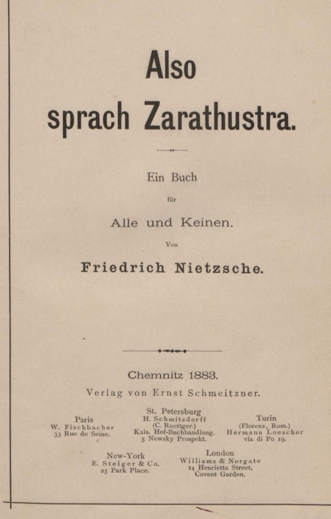 [9] Also sprach Zarathustra: Ein Buch für Alle und Keinen (1883–1885).